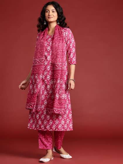 Fuchsia printed Kurta with Trousers with dupatta