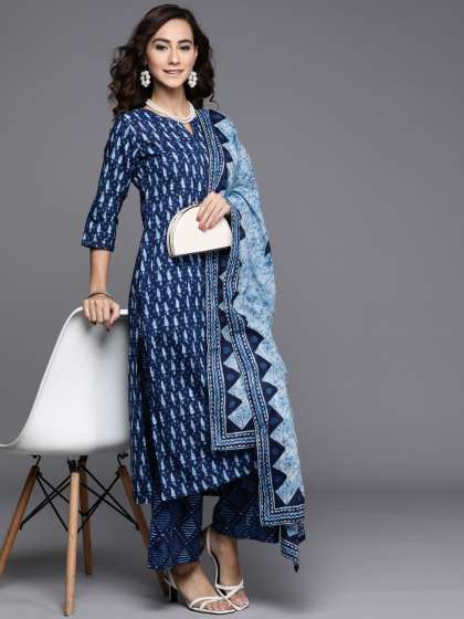 Blue printed Kurta with Palazzos and dupatta